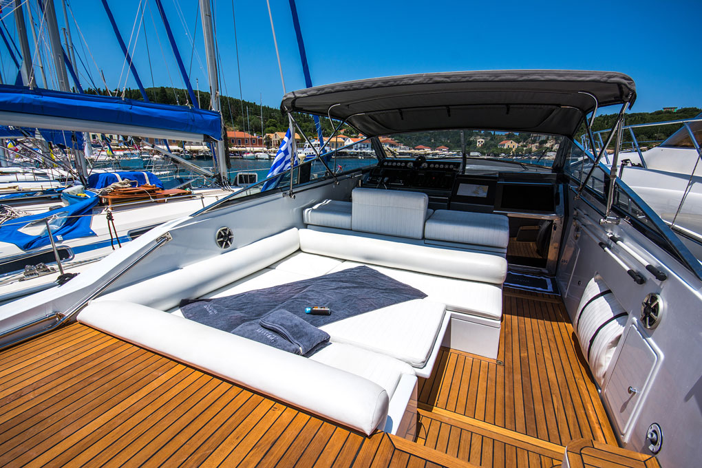 This 45 feet beauty is equipped with two new Volvo engines D9 575 HP, new teak deck, sun tent and swimming platform. Ultimate safety issues are met with GPS, plotter, VHF radio system and all the safety equipment meets or exceeds the safety standards set by the Greek Ministry of Merchant Marine (life rafts, EPIRB, life jackets, fire extinguishing equipment, etc.).